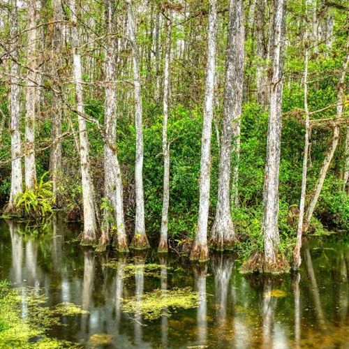 Explore the lush wetlands of Big Cypress National Preserve on a self-guided driving tour. Wander along beautiful boardwalks through diverse habitats, learn about the area's history, and keep an eye out for alligators. Learn about the Seminole tribe, past threats like plans for an airport, and more.